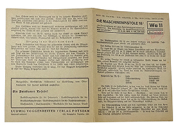 ポケット版、Wa11 Die Maschinepistole 18I 見開きタイプの冊子。 イラストを用いた部品説明及び文章で構成されたシンプルなものとなります。(MD)