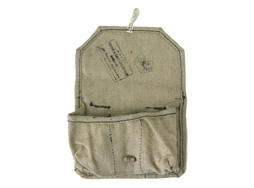 大戦中に生産されたキャンバス製のパウチで、手榴弾が3発収納されます。 蓋の内側に大戦中の刻印があります。