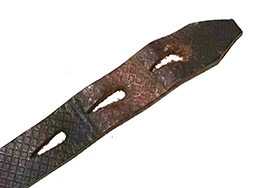 イスラエルで使用されていたスリング。 移動式バックルの縫い目が千切れておりますが、それ以外の部分は健在です。全体的にかなり固くなっております。