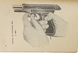 Die Selbstladepistole,Modell 27,Kaliber 7,65mm 使用方法の詳細写真と分解図有り、サイズ145mm×105mm、全32頁の内50%に、イラストもしくは、写真入り。 独語。