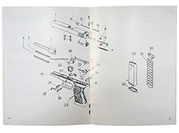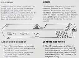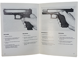 グロック 17のマニュアルです。 独英仏西語、図版あり、全30頁。 経年による擦れや変色、折れ等は見受けられますが、目立った破損はなく、全体的には良い状態を保っています。 (TM)
