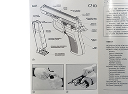 Ceska Zbrojovka社発行。 表紙にはNAVOD NA POUZITI, CZ83, INSTRUCTION MANUALと二ヶ国語でタイトルがあります。 表裏表紙はカラー、内容白黒23貢。 分解図と操作方法の写真ありますが、他は全て文字。 チェコ英二カ国語。