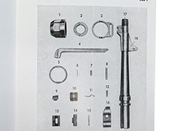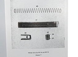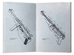 復刻版、D167/2 Maschinenpistole 40 und 38、1943年発行の復刻版。 パーツ・リスト。 断面図及び分解時に必要なパーツ名が数字と表で対応するように説明されています。