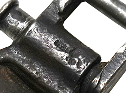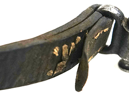 バックル部分の刻印が削られたような形跡が確認されます。 バックルを留めている革部の縫い目が解れていますが、全体的にヒビの少ないしなやかな質感となっております