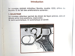 ベレッタM12(PM 12SD)のマニュアル。 表紙左上にフランス語で内務省と記されているため、フランス国家警察用に配布されたマニュアルであると推測できます。