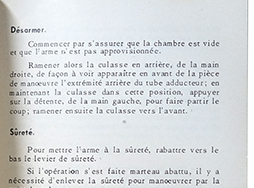 1980年代初期までFA-MASの前身として使用されていた、 MAS49ライフルのマニュアル。 写真を用いての解説や分解方法、射撃不良への対処方について記載されています。(MD)