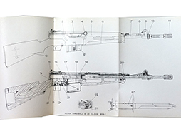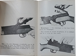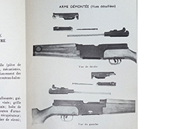 1980年代初期までFA-MASの前身として使用されていた、 MAS49ライフルのマニュアル。 写真を用いての解説やライフルグレネード、分解方法、射撃不良への対処方について記載されています。軍隊の武器庫に置かれていたものであると思われる青判子が表紙に捺されています。 (MD)(MD)