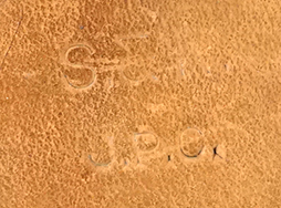 本商品は背面の刻印から、S&R(Sheffer & Rossum)製でJ.P.Cにより検査済みのものとされています。多少の使用感はありますが革の色合も良く縮みも見られません。