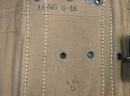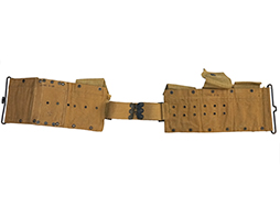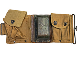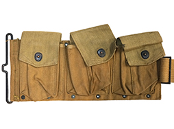 BAR用20連マガジン4本とM1911 ピストル用マガジンが2本収納可能となってます。 鉄製のカップにはBARのバット・ストックが丁度収まり、腰撃ちする際のサポーターとなります。 なお、ショルダー・レストの付いたM1918A2ではストックのサイズが大きくカップに収める事が出来ません。