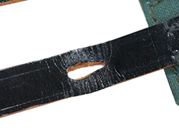 全体的に使用感は少ない印象で、生地の色味は鮮やかです。 ストラップに開け閉めの癖が若干ついていますが、強度的にはしっかりとしています。 (YS)