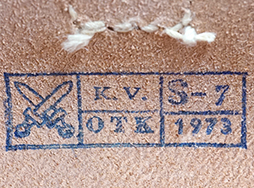 本品には個体によって刻印の種類や有無、製法の違いが見られます。 初期 (60年代頃) に製造されたマガジン・パウチでは、フラップ内側にクロス・ソードを中心として左側にK6などのコード、右側に製造年が打たれています。 初期型ではパウチ下部の角がやや角ばっている他、ギボシの頭が平坦な形状、内部の仕切り革のリベット補強は行われていません。