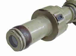 本体左側面には「P.Z.F.1-2.5x28°dpw Nr.3248」の刻印が見られZeiss-Ikon社で生産された事が判ります。 鉄が露出している箇所は表面錆が見られますが、オリジナルの塗装は小傷が少なく鮮やかに残っています。 視界に埃が散見されますが充分に見通す事ができます。 レティクルも確認する事が出来ますが、本来ですと中央のエレベーション・リングを操作することでレティクルの一部が動きますが、その機能は失われています。接眼部の視度調節リングは健在です。