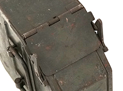 - アイテム説明MG34の2連装対空射撃用銃架36型(Zwillingssockel 36)に使用される150連弾薬箱 (Patronenkasten 36)です。 本品は上部の蓋のロックがバネのテンションのある2つ爪型で、アモベルトの通る箇所に可動式カバーのある、1型(初期型)と呼ばれるタイプです。