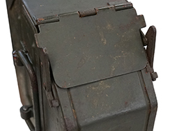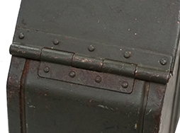 - アイテム説明MG34の2連装対空射撃用銃架36型(Zwillingssockel 36)に使用される150連弾薬箱 (Patronenkasten 36)です。 本品は上部の蓋のロックがバネのテンションのある2つ爪型で、アモベルトの通る箇所に可動式カバーのある、1型(初期型)と呼ばれるタイプです。