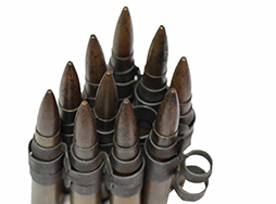 使用感、経年感が有り、また.50口径のダミーカートに総じて言えることですが、弾頭を薬莢に留めるためのダイスではなく、ペンチなどで締めているため、弾頭の並びはややまちまちで、ネックの部分はややいびつな感じとなっております。 また使用済を利用したダミーカートのため、弾頭、薬莢共一部に凹みなどがございます。