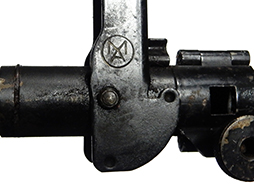 SMLE No.4 Mk I小銃用のMk 5 グレネード・ランチャーです。 サイト側面には〇に「AM」の刻印が確認出来ます。 本品は全体に経年による小傷や擦れが見られる他、一部に剥げている箇所や若干の時代錆が散見されるものの、目立った欠損等は見られず、概ねしっかりとした状態が保たれています。 起倒式のサイトや着剣ラグへ装着するための蝶版部分、螺子についても作動について問題はありません。 発射筒内が無可動加工により塞がれた安全品です。
