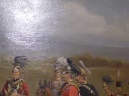 - アイテム説明「British Cavalry Regiments, Commissioned for Coronation of King George V, 1911(大英帝国騎兵連隊、ジョージ5世戴冠式公認、1911年)」と題(木製の題)が付いた油絵。 当時の額装されたキャンバス地に油絵。 サイズは約59cm(縦) x 約104cm(横)。 額装に若干傷があるものの、本体(油絵)自体は非常に程度の良い品です。 馬を得意とした19世紀の英国の画家John Chester Mathews(1884年-1912年)の晩年の作。 ジョージ5世(1865年6月3日 - 1936年1月20日)の1911年戴冠式公認画家(Commissioned for Corodnation of King George V)として当時の大英帝国の騎兵全兵科を描いた作品。 「J. Mathews」と署名。 第一次世界大戦前の英軍騎馬兵科を全て描いた非常に珍しく興味深い作品です。