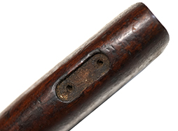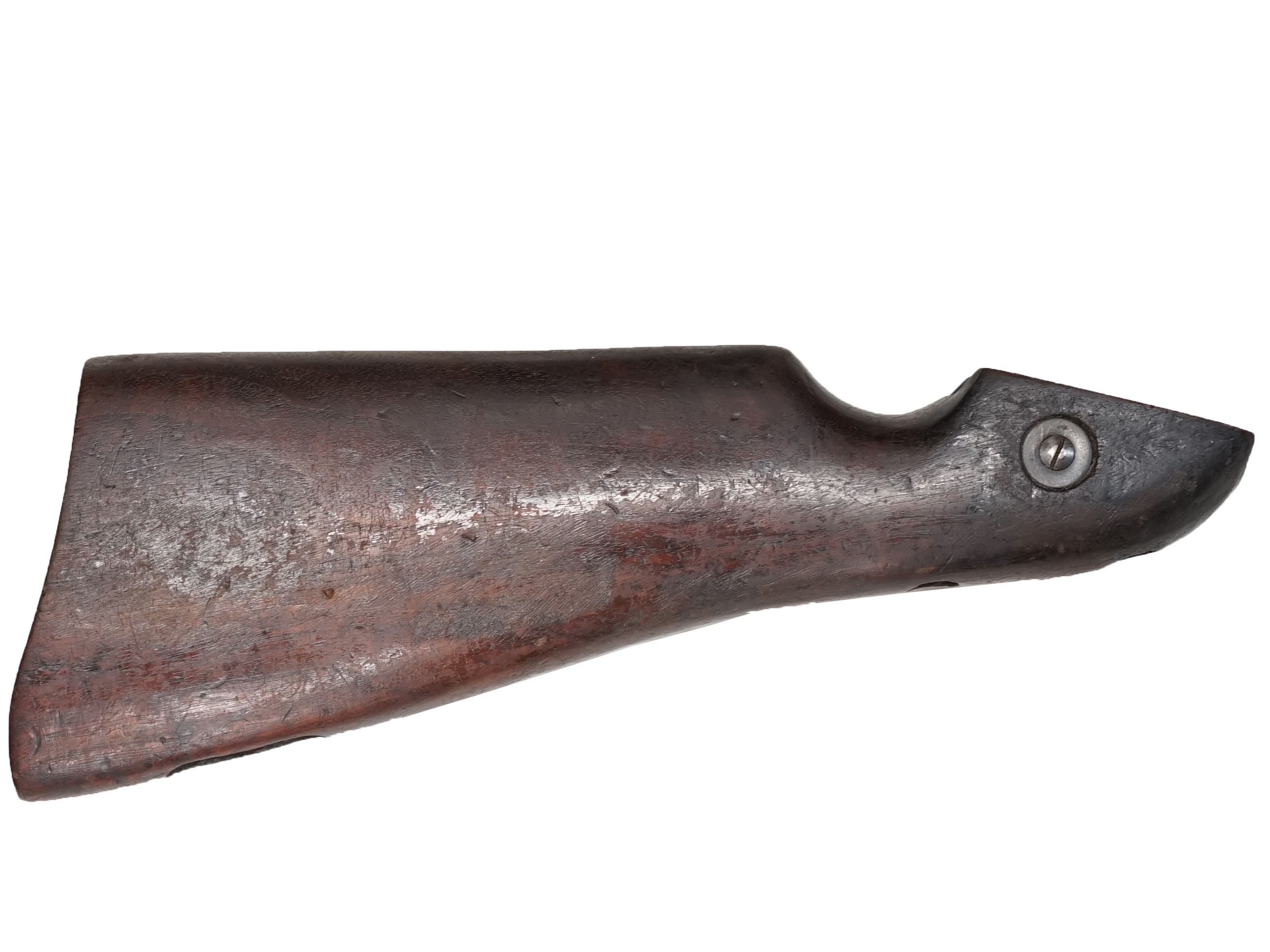 トンプソンM1928用のバット・ストックです。 割れ止めのワッシャーがついた後期型です。 適度な使用感が見られ、小傷や線傷などがありますが、大きな欠けや割れは見られずおおむね良好な状態が保たれています。 金具類は付属していません。 (TK)