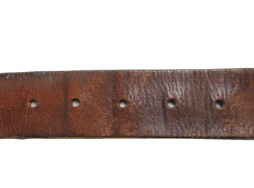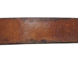 - アイテム説明旧日本陸海軍の下士官兵が使用した帯革(たいかく)です。 陸軍では殆どの兵隊が、海軍は陸戦隊員等が使用しました。 ベルト部分の長さ約1,045mm、幅約44mm、厚さ約4mm、穴12個、金具(びじょう・バックル)は真鍮製で、その太さ5ミリです。 若干使用による汗染みがありますが、革自体は柔らかさを保っており非常に良い状態です。 金具の縫い目も完全で、年月を考えると非常に良好な状態を保っています。 ベルト穴も通し跡はありますが、長期に使うことによってできる穴の楕円形の広がりは殆どありません。 遊革が欠損していますが、近年このようなオリジナルのべ-シックな装備品が入手し難くなっています。