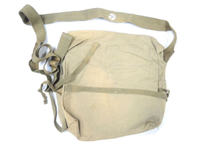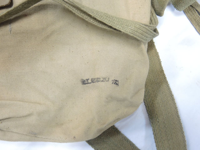 日本軍ガスマスク嚢です。 日焼け?等の経年変化等ございますまた検定印が無いため民間用の可能性があります (造り自体は軍用です)。 大きさは約28cmx約29cmです。