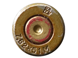 M14ライフルやFAL、Gew.3などに使用される7,62mm×51 NATO弾のダミーカートです。 弾頭は新品ですが薬莢は鉄製の使用済み品をリサイズしたもです。 薬莢はロシアの民間向け弾薬メーカーのBarnaul製で、ヘッドスタンプは7.62x51Mとバルナウルのロゴとなっています。 個体によって薬莢の表面仕上げや弾頭の突出量に個体差が見られます。 雷管に打撃痕のある、火薬などは一切入っていない安全品です。(TK)