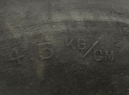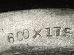 サイズを現す600x175と、空気圧を現す4.5kg/cm2、また現在のブリジストンを示すBSの表記があります。