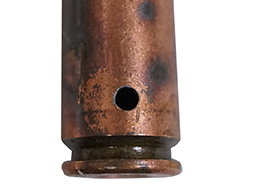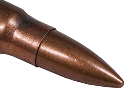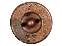 AK-47やAKM・RPD用に使用される7.62x39mm弾のダミーカートです。 弾頭はFMJで、ヘッドスタンプから中国製となっています。 薬莢は鉄薬莢で、側面には安全処理のため2mm弱の穴が開けられています。 弾頭や薬莢には若干の錆や緑青の発生が見られ、アモベルトへの装着痕が見られますが、総じて大きな破損や変形は見られません。 雷管の装着されていない、内部に火薬等が一切入っていない安全品です。 (YS)