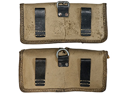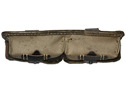 - アイテム説明Gew.43およびKar.43に使用されるマガジン・パウチです。 本品はライト・タン色のビニール製で、背面のベルト・ループは黒色革製となっています。 また、背面にはサスペンダーと接続するためのDリングが装着されており、Dリングの留革も同様に黒色となっています。 本品には打刻やスタンプは見受けられません。 生地には若干の硬化や色のくすみ、染みが見られますが、強度に大きく影響を及ぼすような縫い目の解れや破損等は見られません。 パウチは大きな型崩れもなく、マガジンの収納には問題ないものと思われます。 個体により状態が異なります。 (TK)(TM)