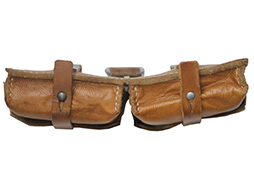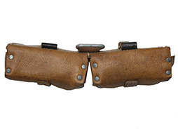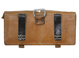 - アイテム説明Gew.43およびKar.43に使用されるマガジン・パウチです。 本品は茶色の革製で、背面のベルト・ループはなめらかな黒色のなめらかな革製となっています。 また、背面にはサスペンダーと接続するためのDリングが装着されており、Dリングの留革は茶色のなめらかな革製となっています。 本品のパウチ内側には「ros 1944」の刻印が見られ、1944年に製造されたものと思われます。 革生地には若干の乾燥や褪色、擦れが見られますが、縫い目の解れや強度に影響を及ぼす破損等は見られません。 パウチには保管に伴う若干の型崩れが見られるものの、マガジンの収納には問題ないものと思われます。 (TK)(TM)