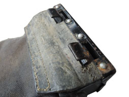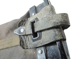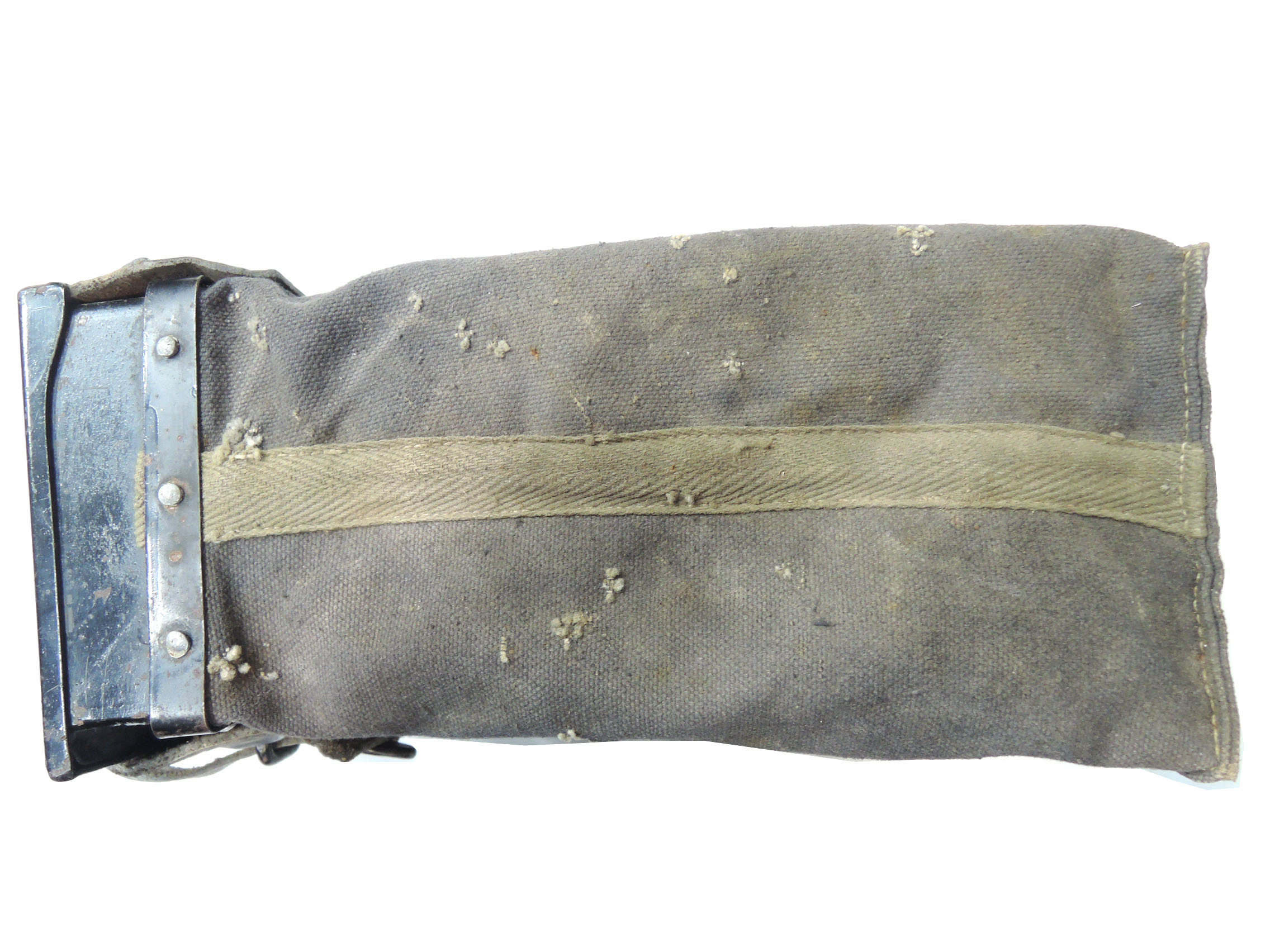 MG34 車載用 布製弾薬袋 (Gurtsack、戦車のボールマウントとターレットマウント用、150連)です。蓋に穴が2か所空いていて錆汚れ等があり刻印、検定印は有りません。各パーツに欠損は無い品です。