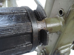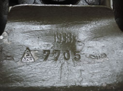 1938 7705の刻印やアムト印が見られます。再塗装と思われ、塗装の剥げや小傷、錆などが散見され使用感があります。皮製のクッションも大きな欠損こそありませんがカビが強く残っています。動作に関しては概ね問題ありませんが、ラッチの一部がかかり辛く、外れやすくなっており、後ろ脚二本の根元のかみ合わせが甘くなっていることで少々ガタつきがあります。また、上下の可動域を制限するギアの一部が破損しており、下限を設定することができなくなっています。