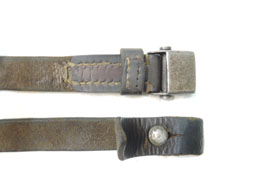 Kar.98k用革製スリングです。 全体的に使用感が見られます、金属部は鉄製です。 革に経年の変化が見られますが、柔らかさは保っています。キーパー付 、バックル欠。