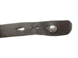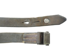 Kar.98k用革製スリングです。 全体的に使用感が見られます、金属部は鉄製です。 革に経年の変化が見られますが、柔らかさは保っています。キーパー、バックル共に欠。