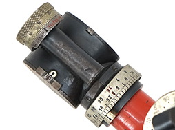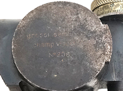 - アイテム説明ドイツ軍の使用したRbl.F.96/16(B) 砲兵照準器です。 対物レンズ・ユニット左側面にはモデル名のRbl.F.96/16(B)やK490の刻印が見られます。 右側面には「grossissemen(一部不詳)」「champ visuel 10°」「No206」の刻印、上面には「GONIOMETRE PANORAMIQUE STE. o OPTIQUE & DE MECANIQUE DE HTE PRECISION PARIS」のアドレス刻印が見られます。 調整目盛り部は上下が「hoher/tiefer」、左右が「mehr/wenigen」のドイツ語表記で、ドイツ占領下のフランスで生産されたものと見られます。 底部の鉤爪状のマウントは第一次世界大戦期のドイツ軍火砲用照準器のものと酷似しており、WWIに帝政ドイツ軍が使用した7.7 cm FK 16野砲に搭載されていました。 WWI終結後、戦後賠償の一環として7.7 cm FK 16野砲はベルギー軍に引き渡された経緯があり、本品のモデル名刻印の末尾(B)はドイツ軍の鹵獲コードと似ていることから、1940年のベルギーの戦いで再度ドイツ軍によって鹵獲された可能性があります。 これらの点から、フランス占領時にベルギーで鹵獲したドイツ製旧型火砲向けに生産されたものと思われます。 俯仰角ダイアルと水平方向のノブも問題なく機能し、調整が可能です。 本体の表面仕上げにはやや擦れや表面錆痕が見られますが、大部分にブルー仕上げが残っています。 対物/接眼レンズともに割れ等もなく、視界に若干のチリやくもりが見られるものの、レティクルははっきりと確認できます。 (TK)