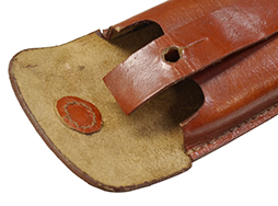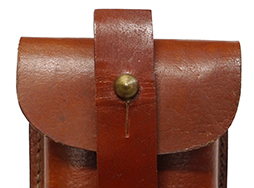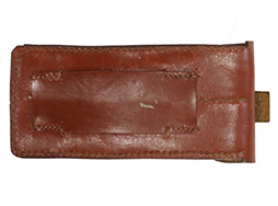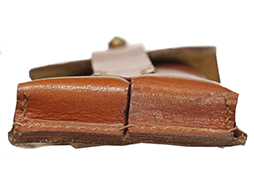 - アイテム説明ペルシャ・ルガー(Model 1314)の2連マガジン・パウチです。 ドイツ軍用のマガジン・パウチと似た形状ですが、検印等はなくフラップの留め革がペルシャ・ルガー独自の形状になっています。 背面のベルト・ループは縦方向(アーティラリー・モデル用ストック・ホルスターのスリング部分)と横方向(幅約4cmまでのベルト)のどちらにも対応可能な構造になっています。 生地は艶のある明るい赤茶革で、経年に伴い若干ねじれたような型崩れが見られるものの、概ね良好な状態が保たれています。 パウチ側底面のコバも磨かれており、丁寧に処理されています。 留め革にはやや皺が見られますが、現状大きなヒビや割れには至っていません。 留め金具には緑青錆が見られますが、問題なく蓋を閉じる事が可能です。 (TK)