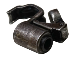 Kar.98K マズル・カバー です。 フロント・サイト・ホッドの付かない初期型に対応しています。 刻印は見られず、ややグリスの固着や表面仕上げの褪色が見られますが、蓋部分の開閉やマズルが当たる箇所のバネテンションはしっかり残っています。 (TK)