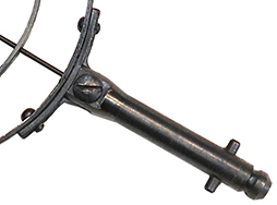 MG42に取り付けて使用する対空フロント・サイトです。 後の簡易型になる前の部品数が多いタイプです。 一部に擦れや小傷が見られる他、薄らと表面錆が見られる箇所もありますが、全体的にはブルーが残っている印象です。 基部のポストに比べ、スパイダー・サイトが若干傾いている印象ですが、リベットや接合部などには大きな破損は見られません。 (TK)