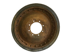 パンター 転輪、直径約73cm(鉄部のみ)、直径約86cm(ゴムを含む)、部品無です。 屋外に長年放置されていたことによる深い錆等が全体的に見られます。 ですのでご注文頂きましても直ぐに発送できないことご了承ください。 東京、大阪店店頭にはございません。