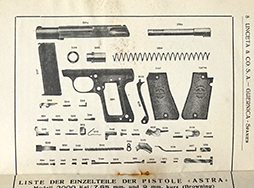 Astra Selbstladepistole Modell:3000 独語、戦前? 全23頁。 イラストを用いて分解結合の手順や各部品名称を記載しています。