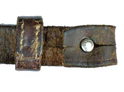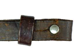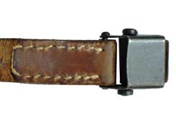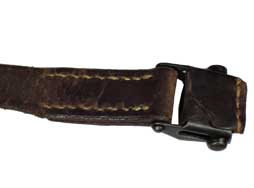 本来ベルト先に穴が三個あるKar.98k用を二個のMP40用に短くしてあり、その末端が真っ直ぐ切られています。 スリング本体は当時のオリジナルで、時代と使用感はありますが、無可動銃に取り付けるのには十分な強度があります(実用には適していません)。