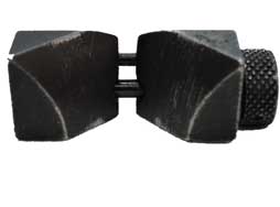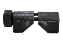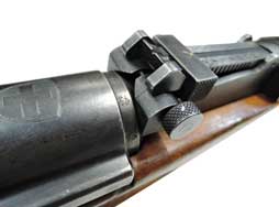 シュミット・ルビン K31 小銃用のリア・サイト補正器です。 リア・サイト・リーフの下に本品を挟んでリア・サイトのずれを補正します。 本品を銃に取り付けた状態で右側のノブを1クリック回す毎に、距離300mにおいて着弾点が約4~5cm変化します。
