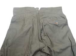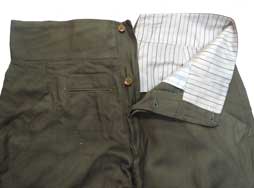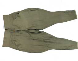 下衣は裏地が上衣とはマッチしていませんが表の生地が上下非常に似た乗馬ズボンです。 下衣も未使用と思われるとてもしっかりした品で、胴回り(ウエスト)は実測約90cmです。 程度の良い乗馬ズボンは珍しいのでお値打ちのセットと思います。
