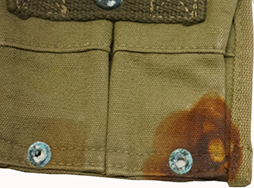 - アイテム説明一般的にタイプ1と呼ばれる、M1 カービンの15連マガジンを2本収納するマガジンパウチです。 基本的にはピストル・ベルトに装着しますがストックにも取り付けられます。