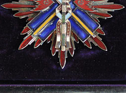 勲章及び略章のどちらも状態は大変良く、模様、七宝、文字もはっきりしており、金具類もしっかりとしています。 特に七宝部分や金属部に曇りなども無く、帯も日焼けや色褪せが見られません。 勲章裏面の綺麗さからも保存状態がわかります。 ケースも同様で、留め金具に多少の経年変色が見られる程度で、外装は非常に綺麗であり、破損や大きな傷は見られない美品です。 (TY)- 詳細画像