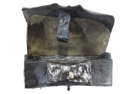 小ポケットや中蓋があるなど、独特の作りとなっており、素材も牛革と思われる中に、一部豚革が使われているようです。