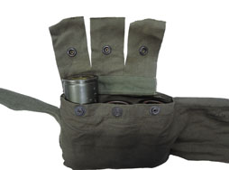 - アイテム説明M203 ランチャー用の40mm グレネード薬莢6個と、3個用のプラスティック・ケース2個がバンダリアに入ったセットです。 3個用のプラスティック・ケースに薬莢を入れた状態でバンダリアに収納することができます。 薄手の生地で出来たバンダリアは多少の糸の解れはあるものの、破れた箇所等は見受けられず、ボタンもしっかりと閉まります。バンダリアに押印されたスタンプに関しては個体によって異なります。