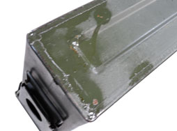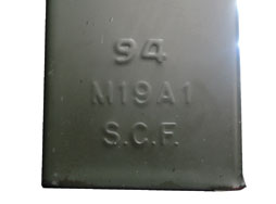 ステンシルと刻印から94年製で、このためは状態は良く内部も綺麗で、フタのロックなども問題ありません。 しかしながらフタや底部の表面になんとも言えない艶有りのクリアーのようなものがついています (ベタつきなどはなく乾いています)。 このため、通常のM19A1よりお値打ちとなっております。 (TY)