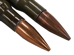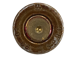 .30-06 弾のダミーカートです。 鉄製の薬莢にリード・コアのFMJ弾頭が装着されています。 ロシアのBarnaul製で、ヘッド・スタンプはメーカーのマークと「.30-06 SPRG」となっています。 薬莢の雷管は打撃痕があり、装薬(火薬)は入っていない安全品です。 個体によって色味の差や小傷の程度の差があります。 (YS)