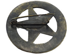 壁にかけて飾れるように柔らかい革に取り付けられています。 革は実測で長さが約260mm。 バッチなので革から取り外すことも可能です。 (TY)