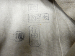 染み等の経年の変化は見られますが紐に欠損も無く、しっかりとした状態の品です。 丈約190cmです。 □に改、昭19、本、行田納、○に18の検定印があります。 (AW)